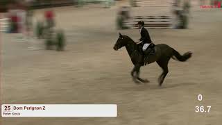 During the young horse test, he was judged to have good capacity and balance, a positive jumping attitude, and a spectacular jumping technique. Furthermore, he was considered to have a quick reaction ability, to be attentive, fearless and energetic. Dom Perignon was praised for his very good attitude, willingness and rideability. He was also judged to be obstacle-wise and concentrated on his task. For temperament and developability, he received a grade of 9.0. During the test ride Dom Perignon was described as a stallion with a good gallop that was easy to collect and well balanced. He has good push-off from the ground, is careful, and has a lot of scoop.